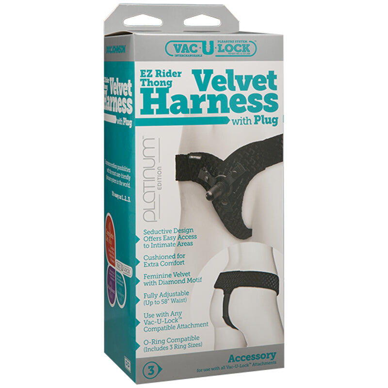 Vac-U-Lock - EZ Rider Thong - Velvet Harness with Plug - Non-retail Packaging