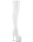 7" (178mm) Heel, 2 3/4" (70mm) Platform Stretch Thigh Boot Featuring Rhinestones Encrusted All-Over the Entire Platform Bottom, 1/2 Length Inner Side Zip Closure
