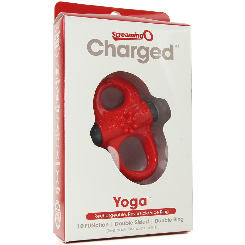 Flex your way to sex-positive fitness with Charged Yoga, a versatile vibrating ring designed to bend and stretch along with your every intimate move. This unique vibrating ring is made with a special super-stretchy comfort fit that makes it easy to wear without tight constriction, making Charged Yoga a great option for beginner cock ring users and fans of versatility. Incorporate powerful vibration into your favorite sex positions and target stimulation specifically where it counts using the Warrior Control finger loop, which lets users adjust the Yoga's motor without interrupting their flow. And if you're not in need of modification, try wearing the Warrior Control loop as an additional cock ring to give him a very special vibrating boost! However you choose to enjoy it, Charged Yoga has a 100% waterproof high-performance motor that rumbles with 10 penetrating functions. On its highest speed, this vibrating ring rumbles for more than 60 minutes and recharges fully for a more satisfying, especially enlightening experience even underwater!