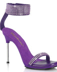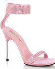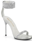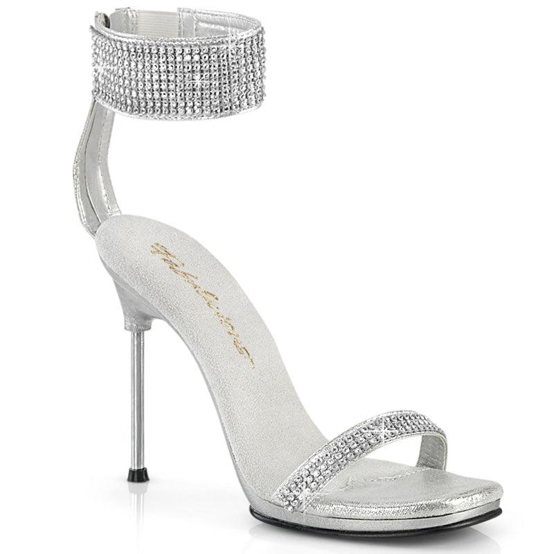 4 1/2" (114mm) Stiletto Heel, 1/4" (6mm) Mini-Platform Sandal Featuring Rhinestone Embellishment on Thin Over-The-Toe Strap and Wide Ankle Cuff, Back Zip Closure