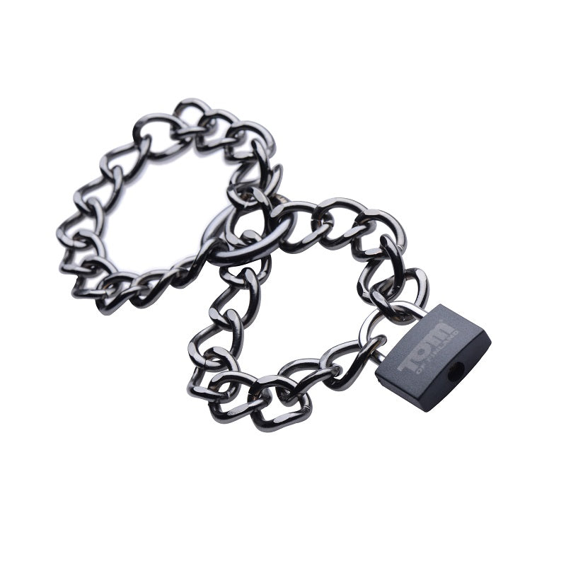 Your partner is unlike anyone else, so they deserve a unique kind of discipline! Bind that bad boy in these extraordinary chain cuffs to enhance your fantasies as they unfold before your eyes! Made of durable stainless steel, they effectively contain your man without risk of escape he is all yours to do with as you please! Use them around his wrists or ankles by adjusting their tightness easily through the center ring. You can even use this distinct device as a collar. Tom of Finland lock and keys are included to keep him right where you want him!