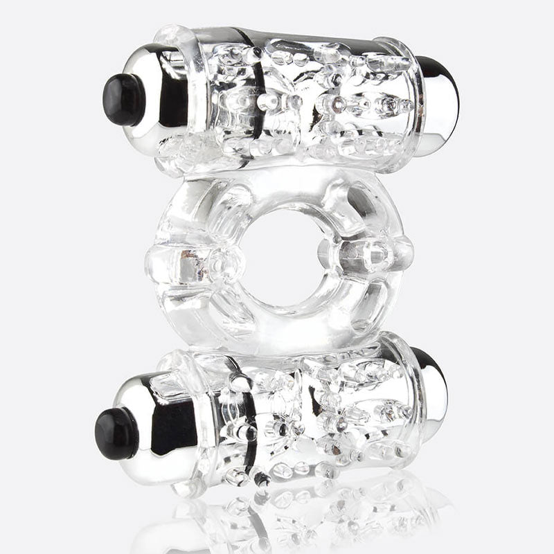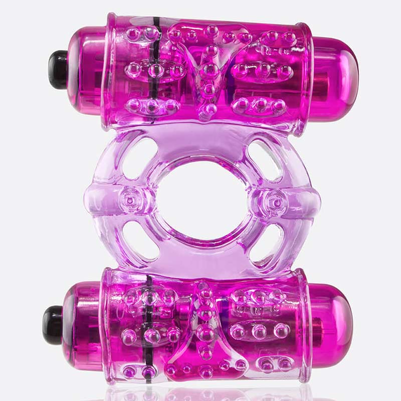The O Wow Double Wammy vibrating ring doubles couples fun with two separate motors uniquely styled for intense stimulation for both partners. The stretchy, comfortable band and dual-action wammy effect offer unmatched stimulation for his and her pleasure.