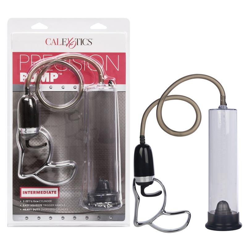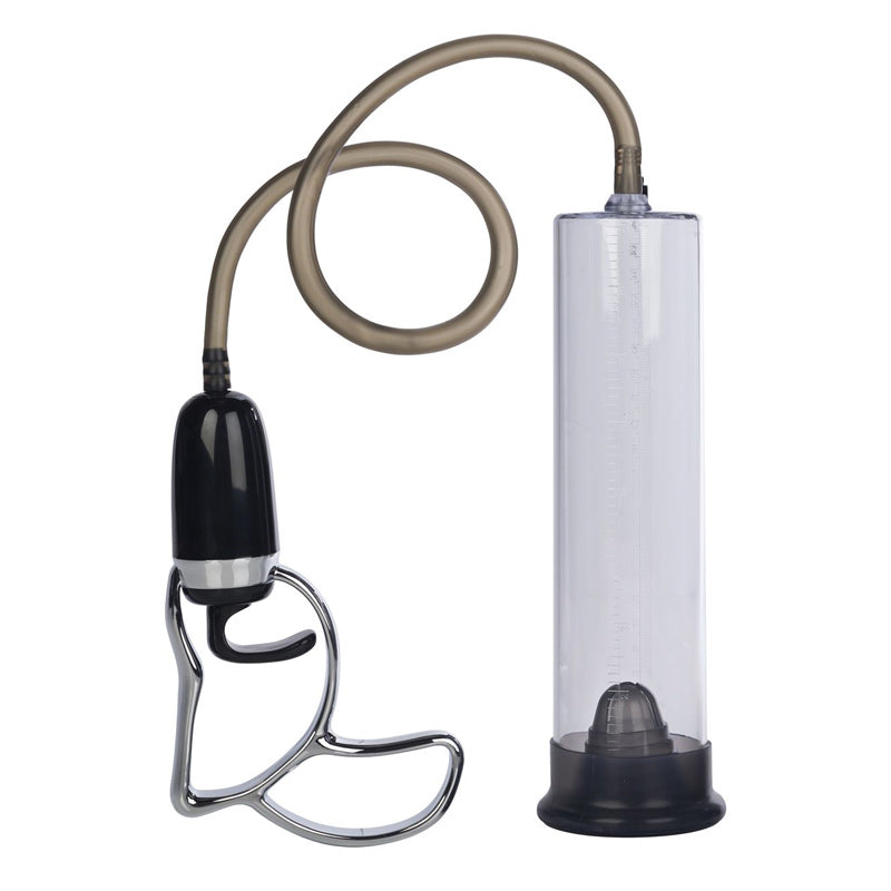 This high quality, heavy-duty penis pump is ideal for those with a bigger than average rod or those looking for the next level of pumping. The American Pumper's Association says this pump lets you take serious pumping to a whole new level! Create an airtight seal around your penis and increase blood flow. With regular use, this increase in blood flow and pressure allows your penis to expand in both length and girth. It's the perfect secret weapon to reach your maximum pleasure potential and drive your lovers wild. The oversized, flanged cylinder with universal incremental measurements allows you to keep track of your progress every session. Once your penis is nestled snugly inside the cylinder, an easy-squeeze trigger handle lets you tighten the seal around it to your level of comfort. When you're ready to wrap up, a push button release valve releases the air in the cylinder in seconds and lets you slip right out. The set includes a tapered silicone secure fit donut for maximum comfort and the airtight seal you need to keep pushing your erection to new heights. A flexible, non-crimping hose makes pumping in any position a breeze. And, at 9 inches by 2.25 inches, the cylinder is the perfect size to accommodate your growing manhood.