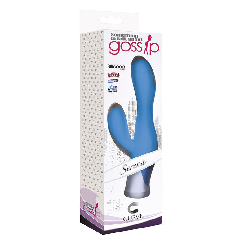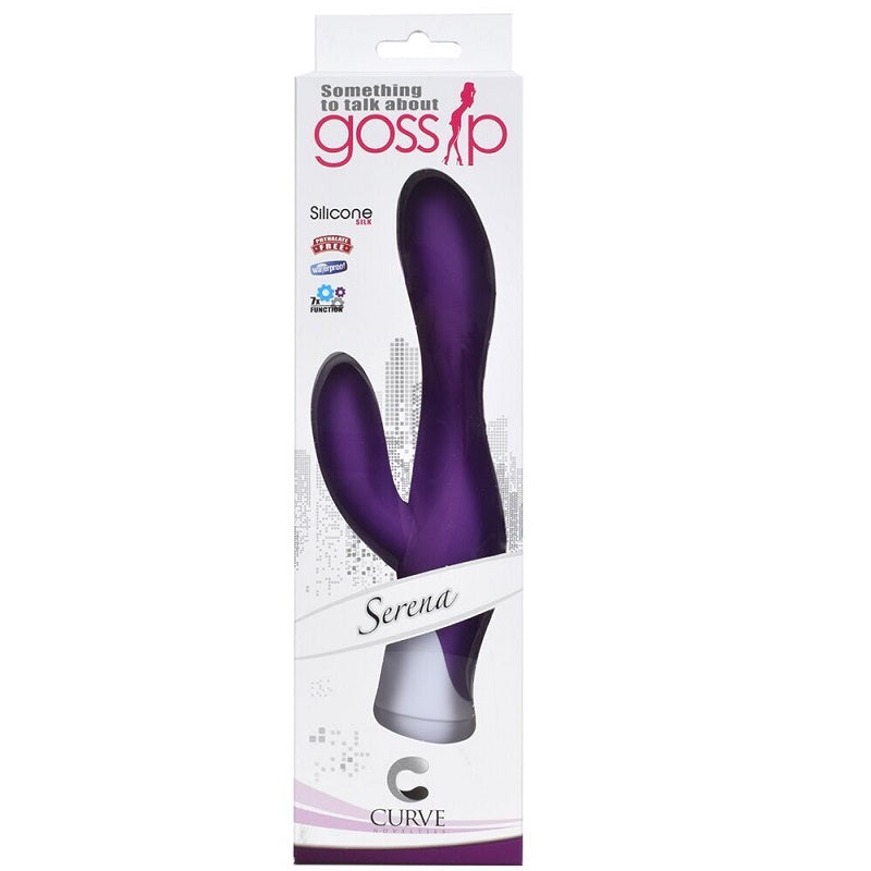 Gossip Serena from Curve Novelties is something to talk about. This powerful, multi-function vibrator features 7 gossip worthy modes of vibration and pulsation. Waterproof for fun in or out of the shower. Uses 2 AA batteries. Made from silicone (massager) and ABS with PU Coat (base, cap). Unscented, non-porous, and hypoallergenic.