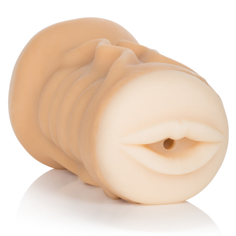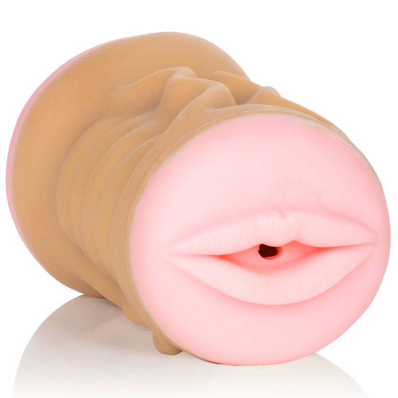 Dual ended Fuck and Suck masturbator has a mouth on one end, and a vagina on the other.
